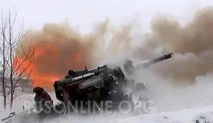 В боях под Артёмовском наш танк бьёт по украинским боевикам в упор: